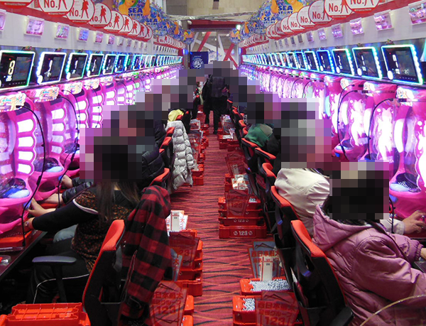 1円パチンコも空き台がほとんど見当たらない状況と、どのシマも楽しげなムードに包まれていた。