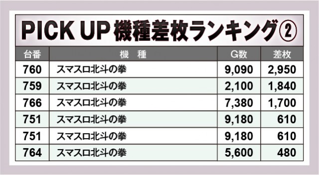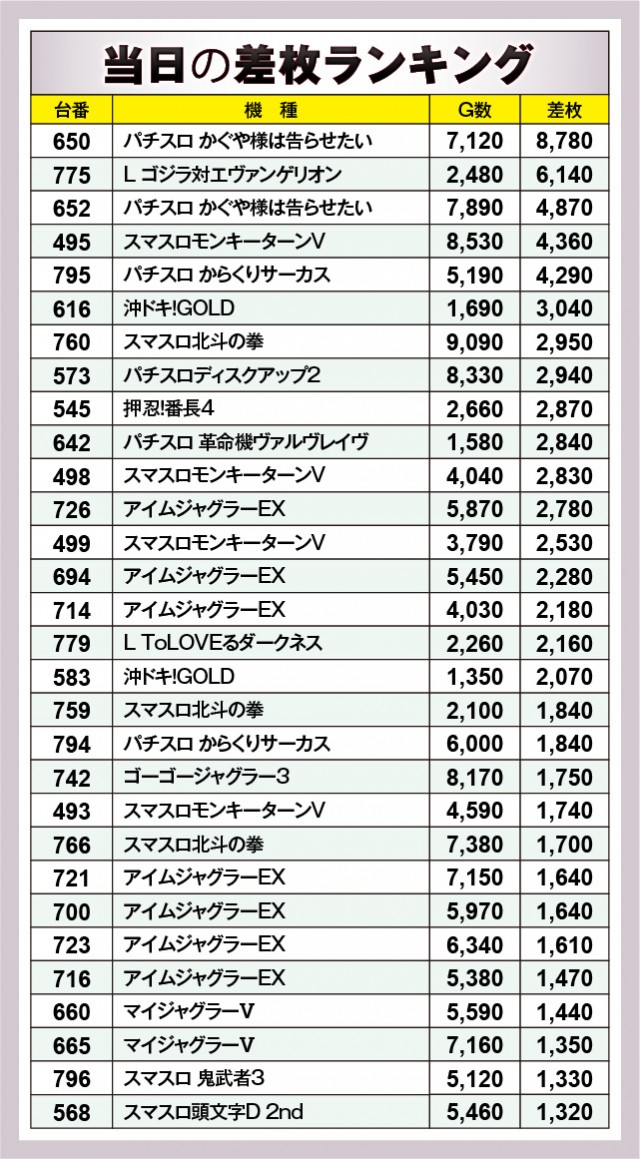 ※差枚数順に掲載しています。