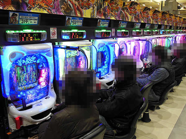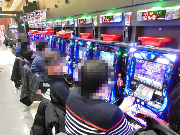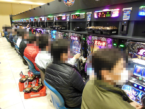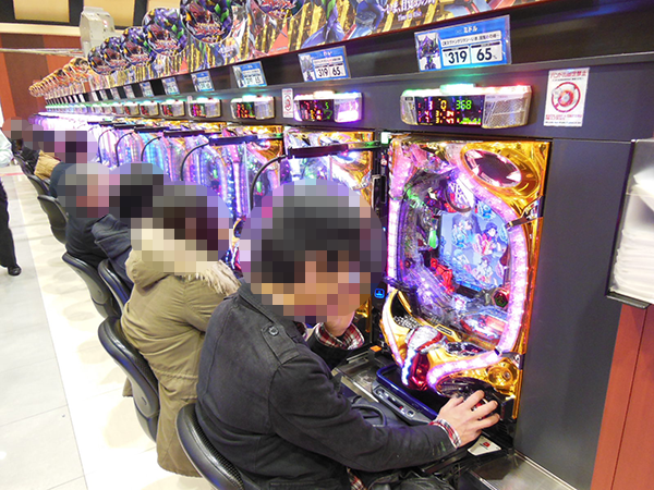 午後の4円パチンコでは、「CR花の慶次X~雲のかなたに~」や「CRヱヴァンゲリヲン~いま、目覚めの時~」が盛況。なかには、満足そうな表情で遊技をおこなっているプレイヤーもみられ、シマ全体が活気に包まれているように感じられた。