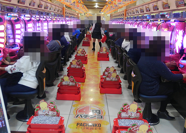4円パチンコをみてみると、海物語シリーズや新台の「CRぱちんこ水戸黄門Ⅲ」などでプレイヤーが遊技をはじめていた。