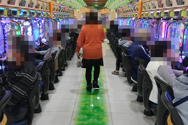 4円パチンコのなかで、注目されていたのが海物語シリーズ。華麗なパフォーマンスを披露するプレイヤーも多く、活気のあるシマとなっていた。