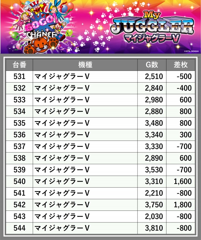 厳選された取材対象機種をはじめ、その他スロット全体から好記録が飛び出した!プレイヤーが楽しんだ1日を下記データにて振り返ってみて欲しい。