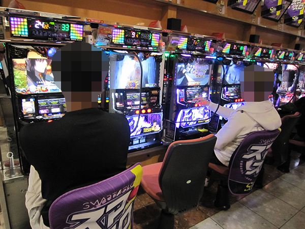 取材時は既に多くのプレイヤーが集結し、パチンコ・パチスロを問わずにぎやかな状況となっていた。