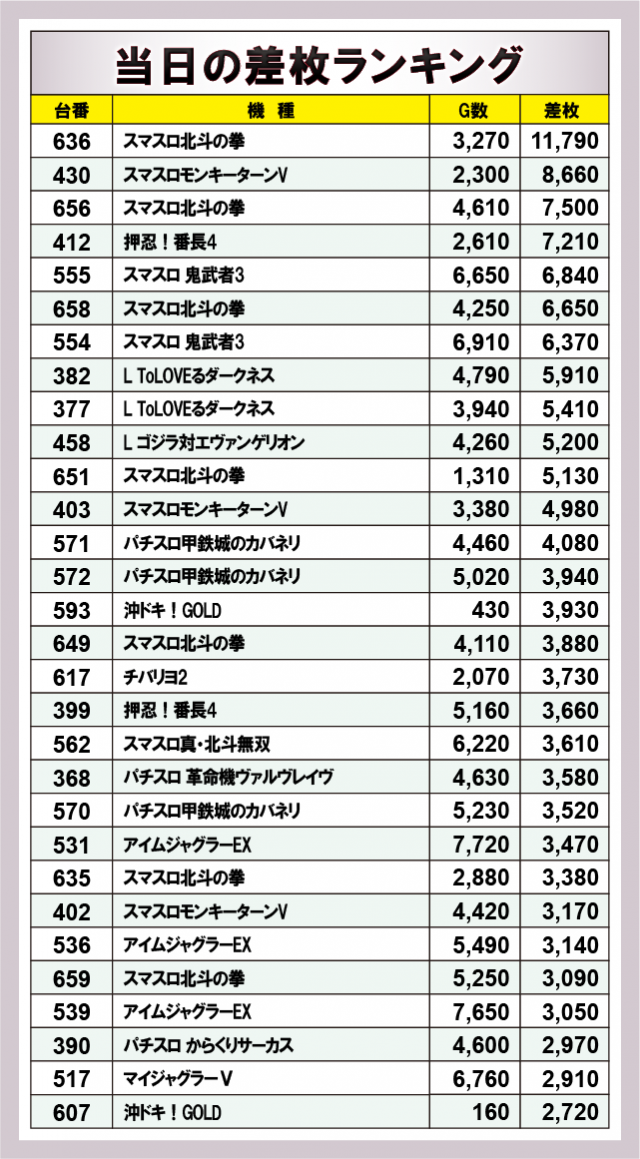 ※差枚数順に掲載しています。