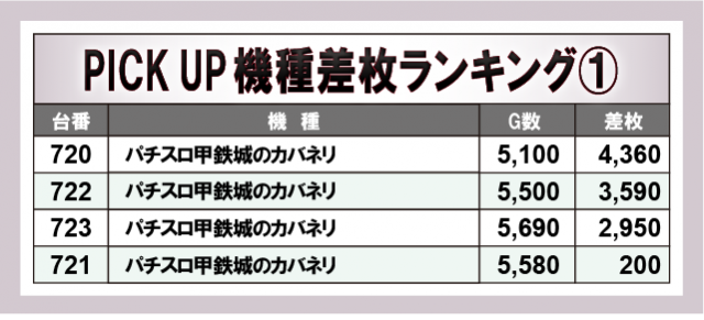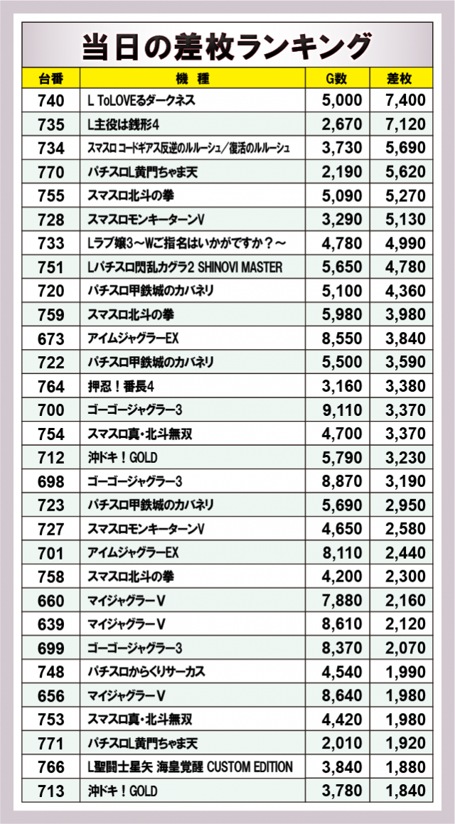 ※差枚数順に掲載しています。