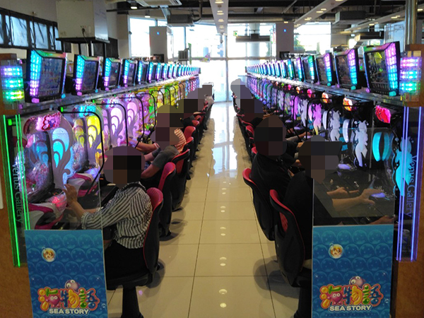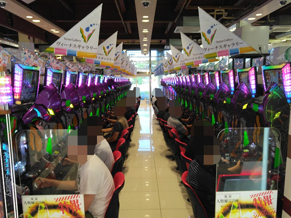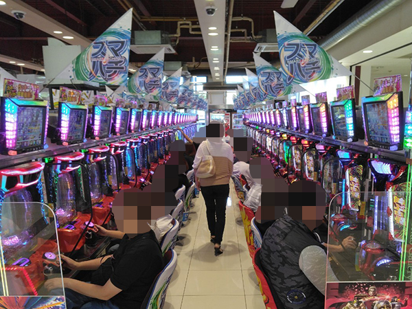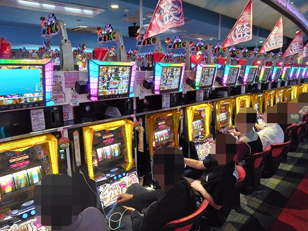 取材時は多くのプレイヤーが来店。パチンコ・パチスロともに、様々な機種が支持を得ていた。