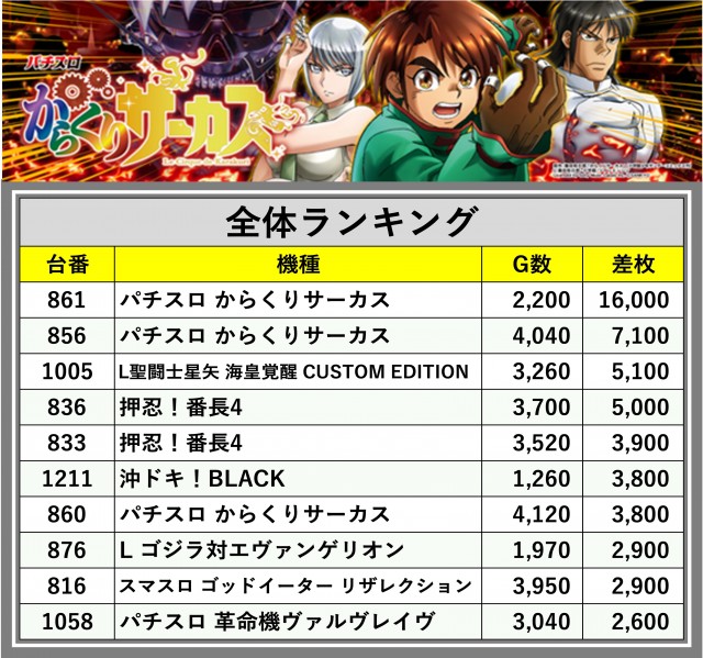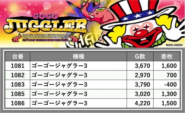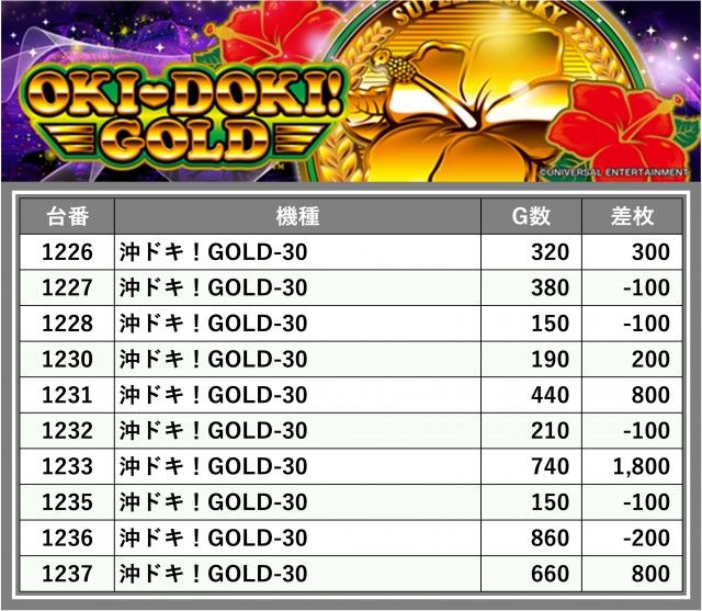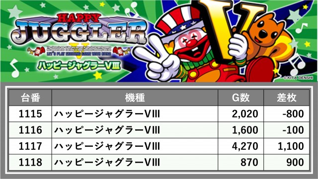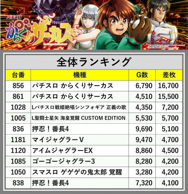 厳選された取材対象機種をはじめ、その他スロット全体から好記録が飛び出した!プレイヤーが楽しんだ1日を下記データにて振り返ってみて欲しい。