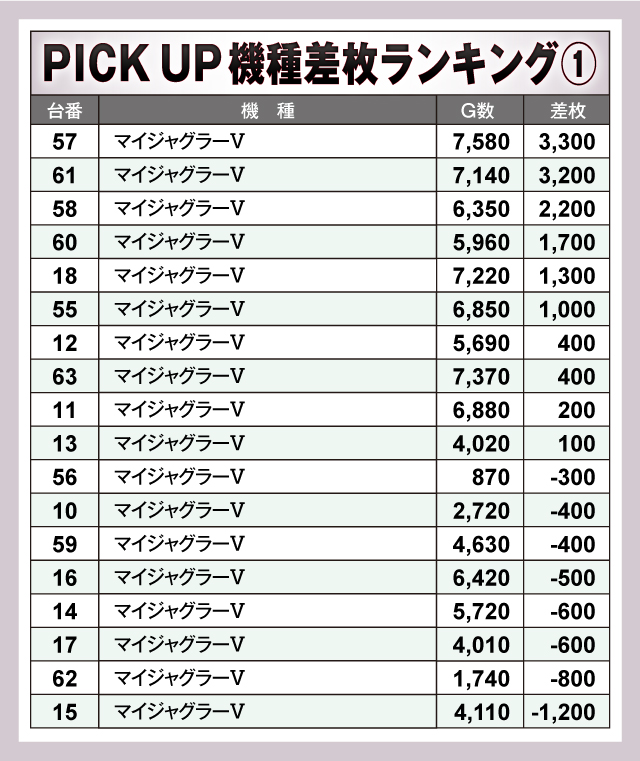 ※差枚数順に掲載しています。