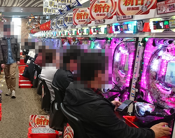 また、4円パチンコの「ぱちんこCR真・北斗無双」や「CRスーパー海物語IN沖縄4」で遊技をはじめている姿も多かった。