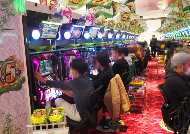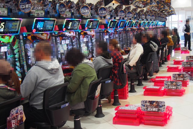 ほかにも、「ぱちスロAKB48 バラの儀式」や「パチスロモンスターハンター月下雷鳴」など、さまざまな機種が空席が見当たらないほどに支持を集めていた。