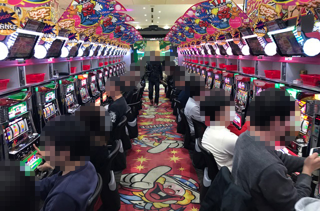 取材を開始した直後から、遊技を楽しんでいる多くのプレイヤーを確認。いたるところがにぎわいをみせていた。