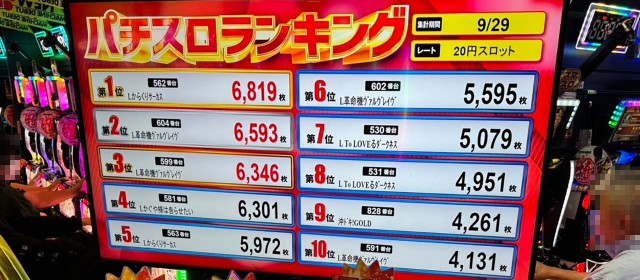 また『スマスロ北斗の拳』では+6,400枚弱・+5,600枚超・+4,400枚超・+3,800枚超が1台ずつ、『沖ドキ!GOLD』では+3,000枚超&+2,000枚超が2台ずつと、上2機種に匹敵する数字をマークした。