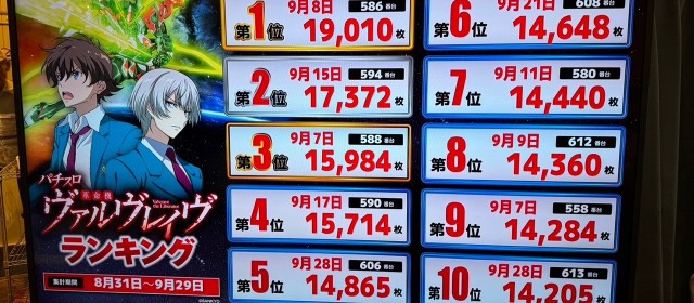 『パチスロ 革命機ヴァルヴレイヴ』も負けていない。+9,600枚超をシマトップに、+5,000枚超×2・+4,600枚弱×1と続いた。