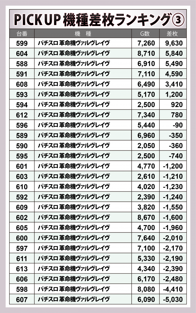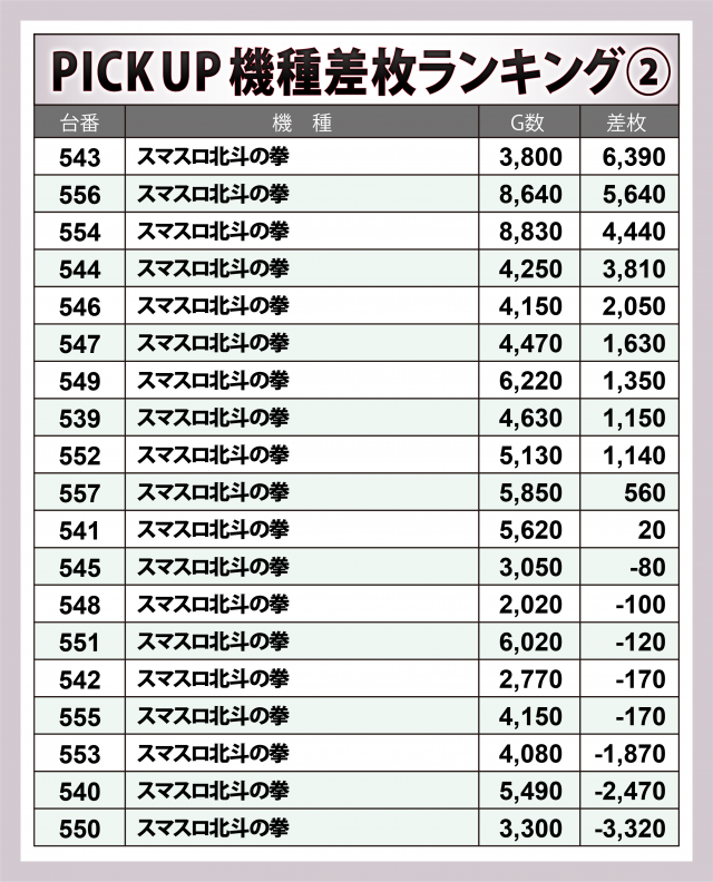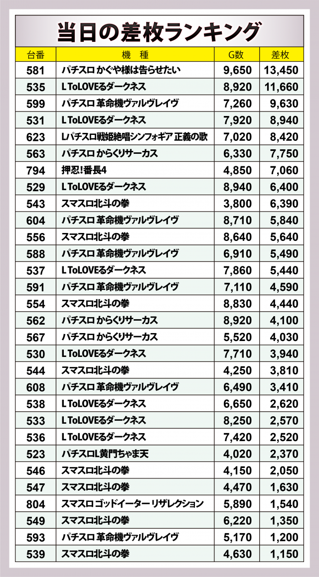 ※差枚数順に掲載しています。