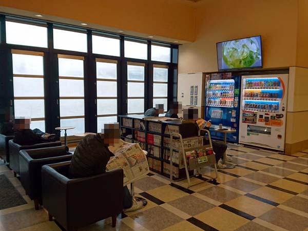 レストスペースでは、雑誌や新聞等がきっちりと整理整頓されており、遊技の合間にゆっくりとくつろぐプレイヤーの姿が多く見られた。