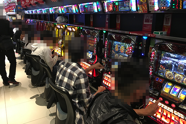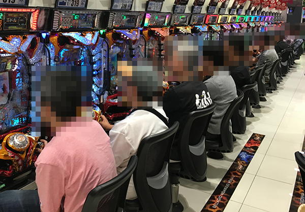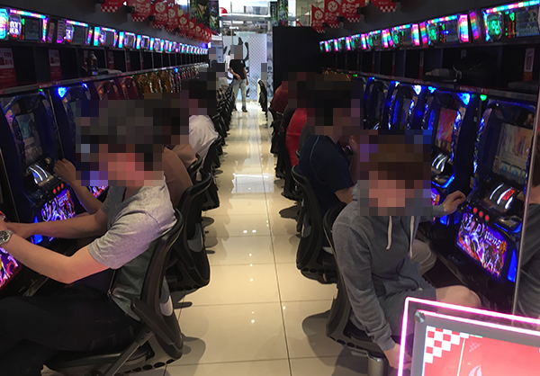 20円パチスロでは、「バジリスク~甲賀忍法帖~絆」やジャグラーシリーズなど、多数の機種が満席となっていた。