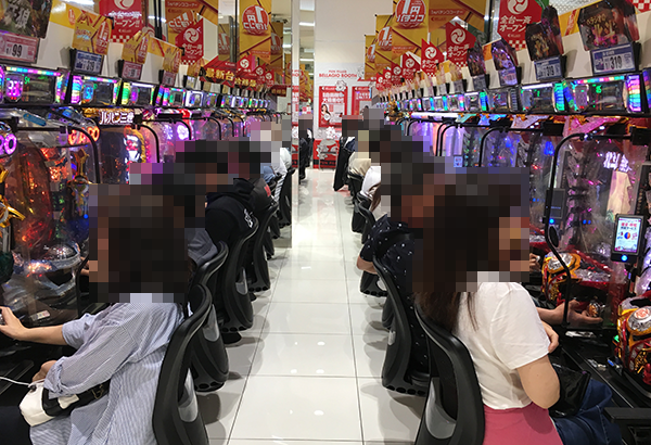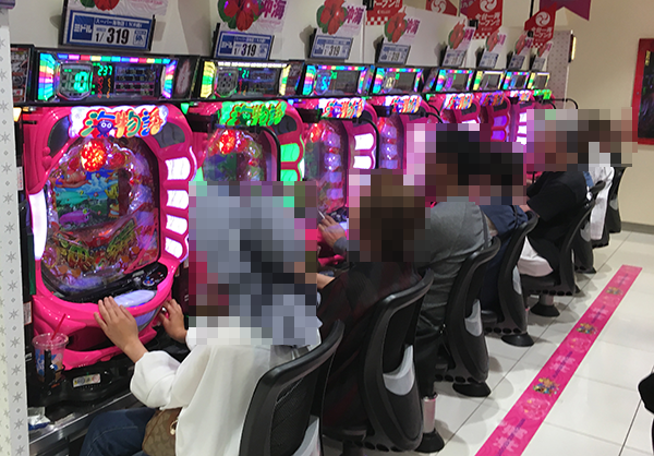 1円パチンコの支持も厚く、空き台は少ない。
