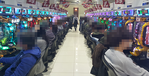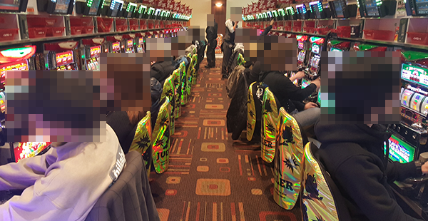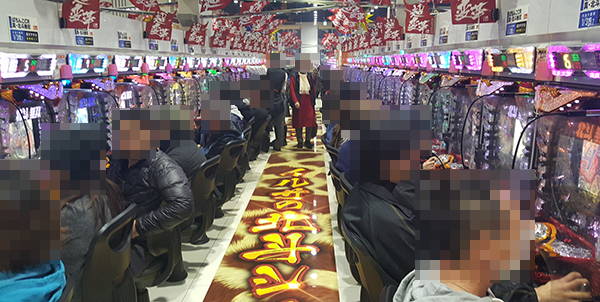 にぎやかな雰囲気が感じられる店内をのぞいてみると、大勢のプレイヤーが笑顔で遊技を楽しんでいた。