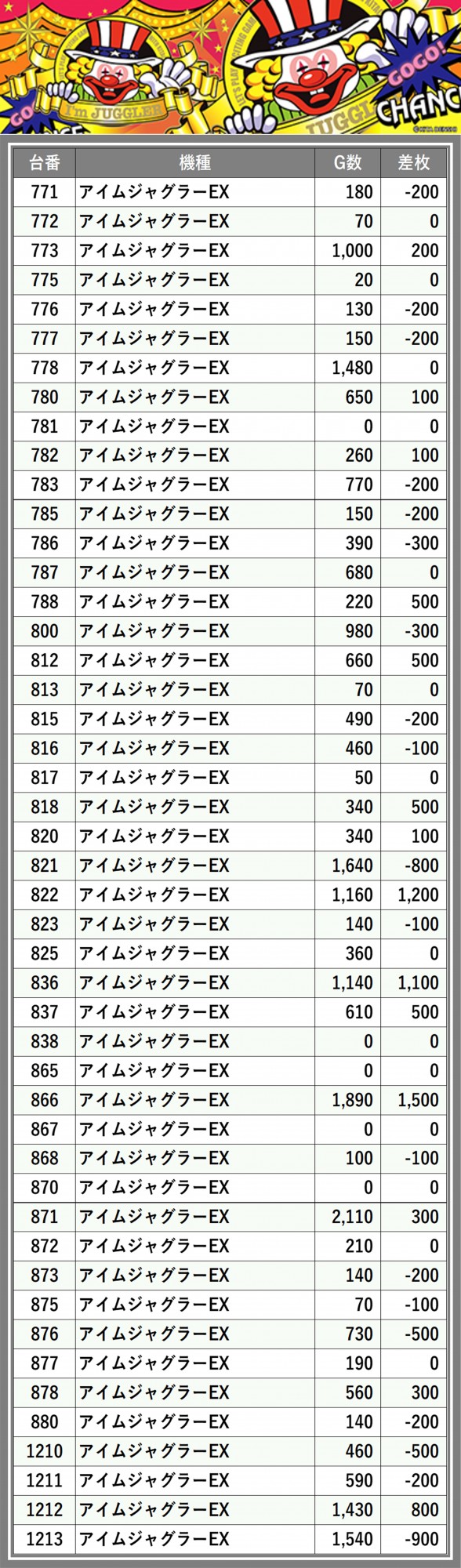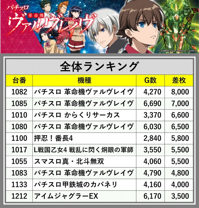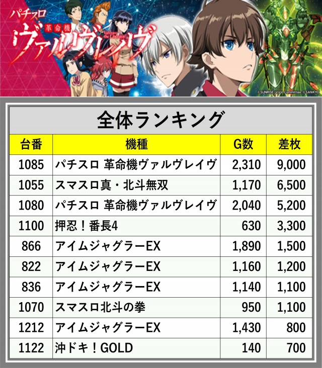 厳選された取材対象機種をはじめ、その他スロット全体から好記録が飛び出した!プレイヤーが楽しんだ1日を下記データにて振り返ってみて欲しい。
