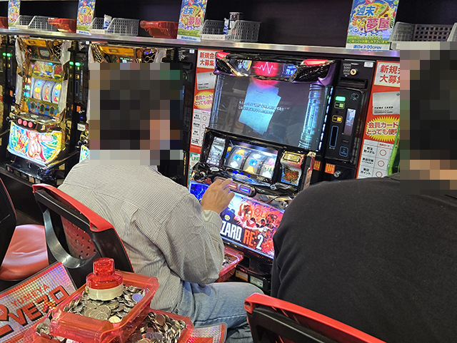 「沖ドキ!GOLD」で4箱以上、「パチスロ バイオハザード RE:2」で3箱以上の持ち玉を確認。