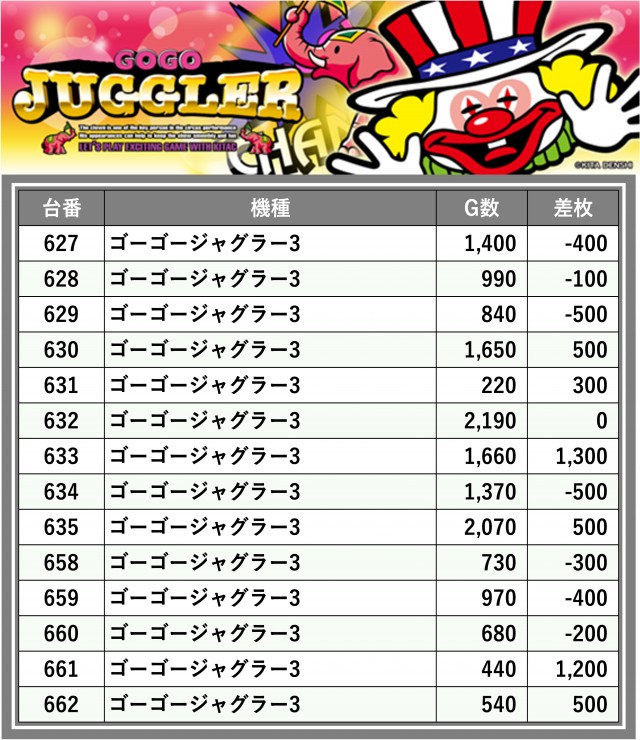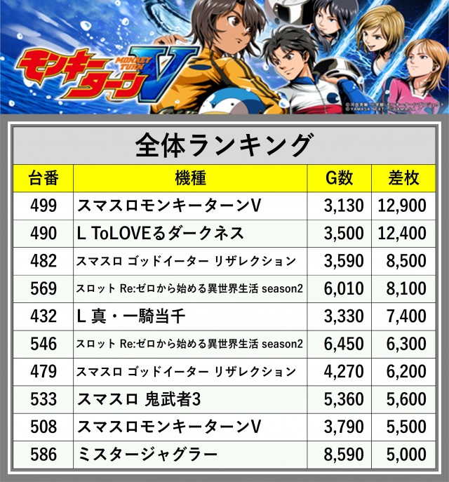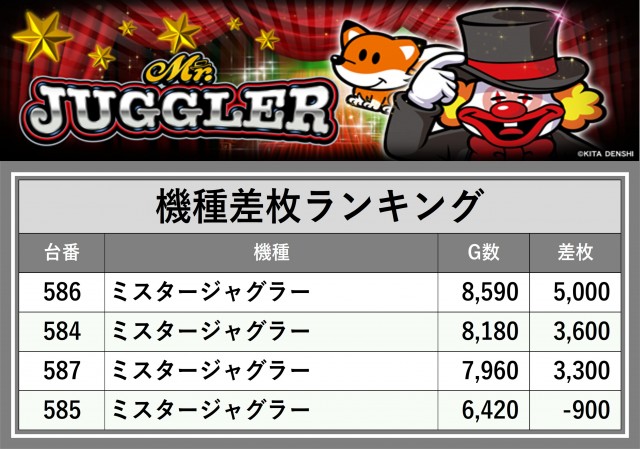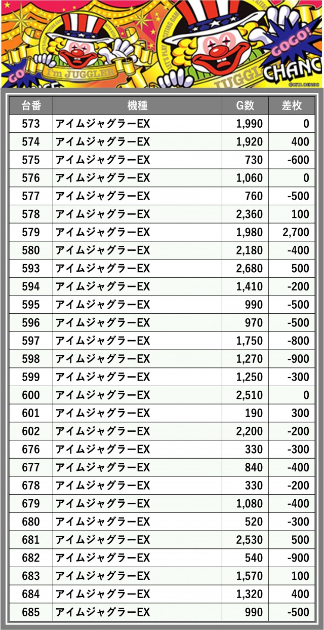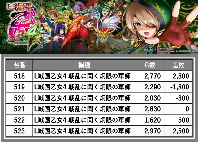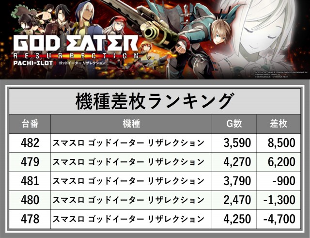 厳選された取材対象機種をはじめ、その他スロット全体から好記録が飛び出した!プレイヤーが楽しんだ1日を下記データにて振り返ってみて欲しい。