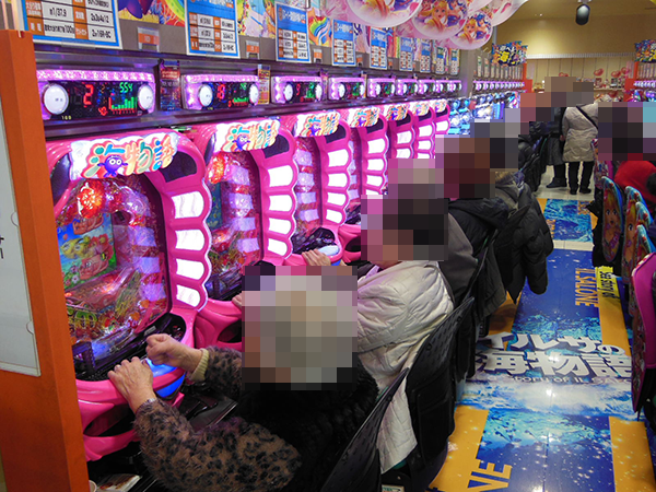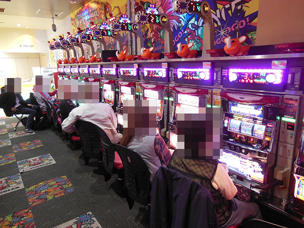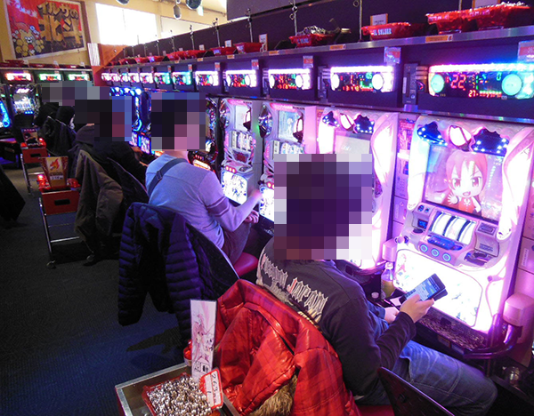 15時ごろのパチスロでは、「SLOT魔法少女まどか☆マギカ2」や「バジリスク~甲賀忍法帖~絆」など、多数の機種が盛況。