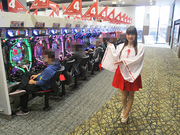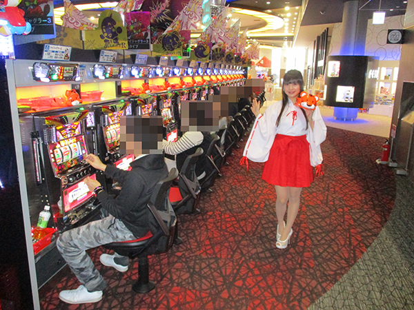 パチスロコーナーでは、ももちゃんも実戦している「バジリスク~甲賀忍法帖~絆」が高稼働をキープしているといった状況。