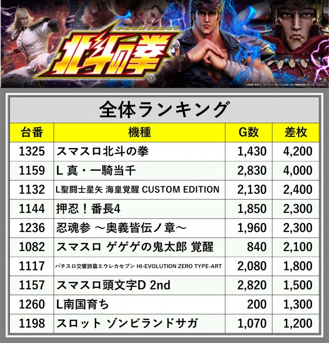 ※差枚数順に掲載しています