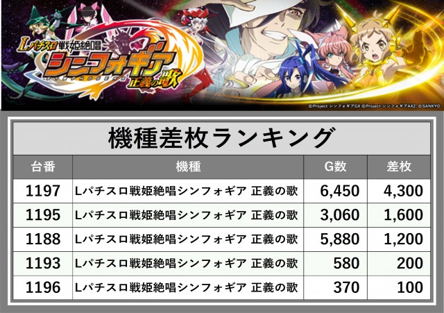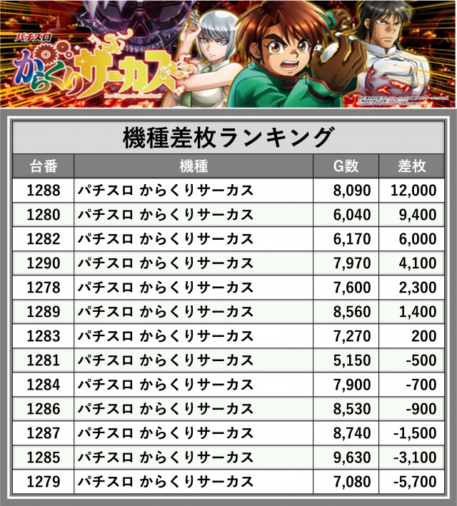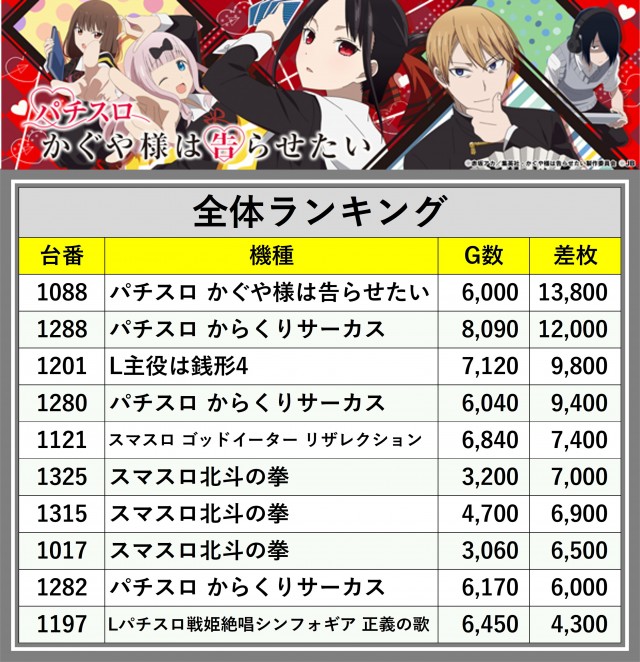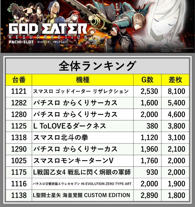 ※差枚数順に掲載しています