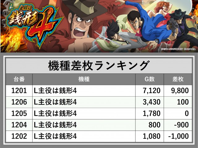 厳選された取材対象機種をはじめ、その他スロット全体から好記録が飛び出した!プレイヤーが楽しんだ1日を下記データにて振り返ってみて欲しい。