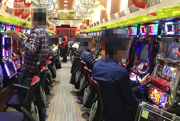 入店した直後から活気が感じられるほどに、ホール内では大勢のプレイヤーが遊技を楽しんでいた。