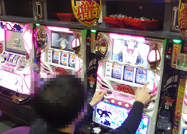15時をまわった頃の20円パチスロをみると、増台されていた「SLOT魔法少女まどか☆マギカ」と「バジリスク~甲賀忍法帖~絆」に、機種の性能を最大限まで引き出しているといった姿を目撃。プレイヤーの明るい表情からは、心から楽しめている様子もうかがえた。