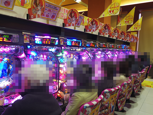 「ミリオンゴッド-神々の凱旋-」や「戦国コレクション2」、「パチスロ ガールズ&パンツァー」など、さまざまな機種にうれしそうなプレイヤーを確認している。