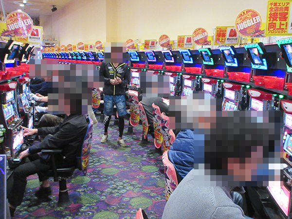 「ゴーゴージャグラー」や「ファンキージャグラー」をはじめとしたジャグラーシリーズの支持も厚い。あちこちにポテンシャルを発揮しているといった姿があり、心から遊技が楽しめているようであった。