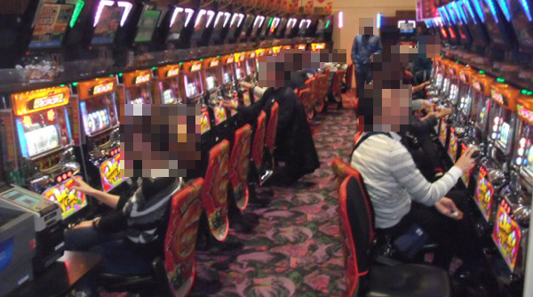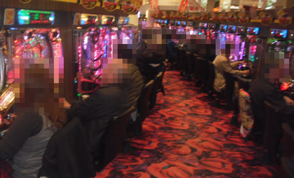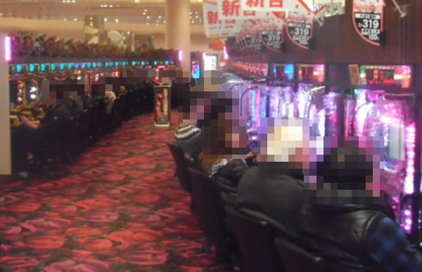 4円パチンコでは、新台の「CR緋弾のアリアⅡ」が満席。プレイヤーの表情は明るく、心から楽しめている様子であった。