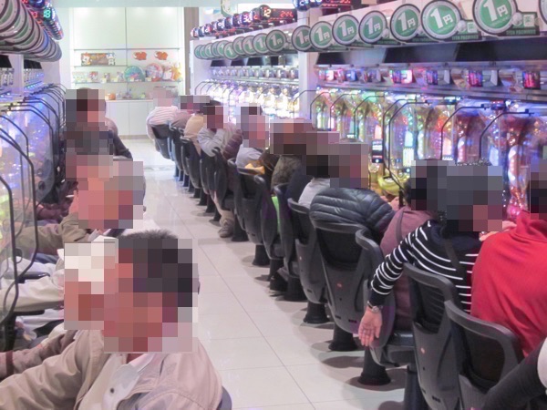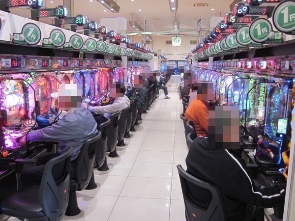 1円パチンコの盛り上がりも大きく、老若男女から支持されていた。定番の海物語シリーズやバラエティコーナーなど、様々な機種から活気が感じられた。