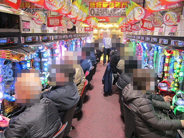 パチンココーナーにおいて、ひときわ高稼働となっていたのが0.25円パチンコ。