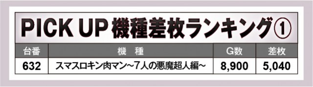 上表の機種はいずれもポテンシャルを秘めていたが、その中でも『パチスロハイパーラッシュ』『沖ドキ!GOLD』『L D4DJ Pachi-Slot Mix』は全台プラス差枚数を達成。そして『スマスロキン肉マン~7人の悪魔超人編~』も5,000枚OVERと結果を残しており、あらゆる機種にチャンスが潜んでいたのが分かる。もちろん人気機種も大きな熱気を放ち、活気溢れる状況を生み出していたのも見逃せない。
