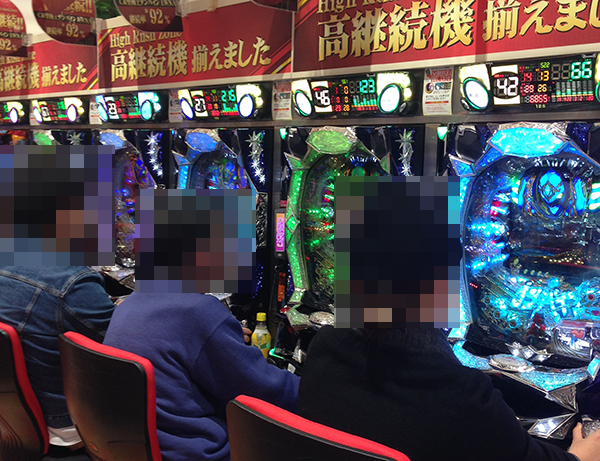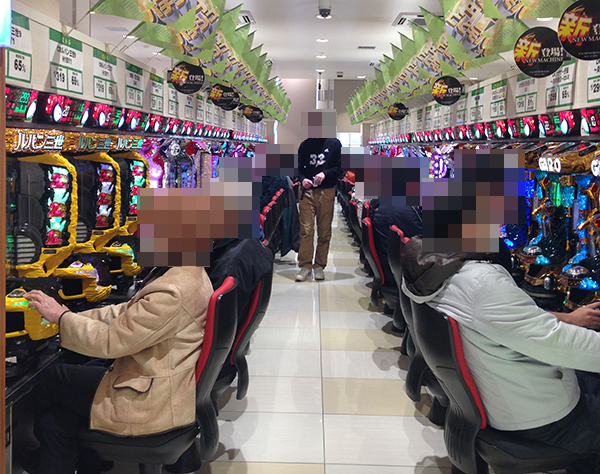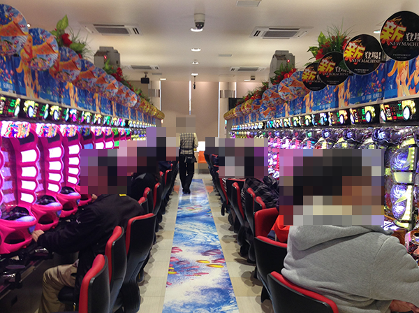15時をまわる頃の4円パチンコでは、海物語シリーズがひときわ人気。