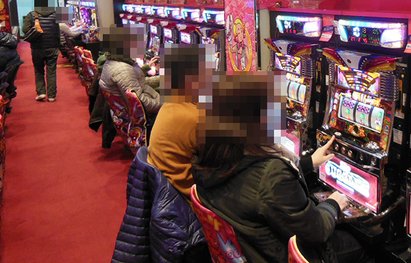 大勢のプレイヤーが遊技を楽しむ店内には、にぎやかな雰囲気が広がっており、いくつもの場所で明るい笑顔がみられた。