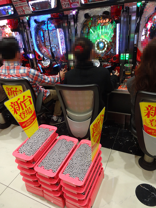 午後の4円パチンココーナーでは、新台の「CR戦国乙女~花~」をはじめ、「ぱちんこCR真・北斗無双」や「CR花の慶次X~雲のかなたに~」など定番機種の人気が高く、華やかな光景を至る場面で確認できた。