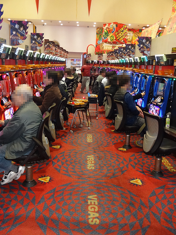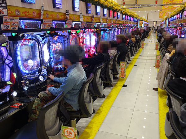 開店直後のパチスロコーナーでは、ハナハナシリーズなどの沖スロコーナーがいち早く埋まり、パチンコでは定番の海物語シリーズに人気が集中した。