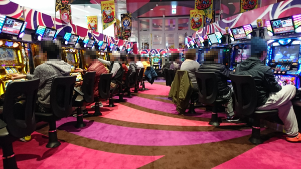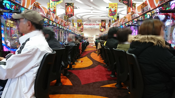 14時頃の500円/120玉パチンコでは「ぱちんこCR真・北斗無双」に加えて、「CR花の慶次X~雲のかなたに~」「CRスーパー海物語IN沖縄4」「CR戦国乙女〜花〜」が大盛況。明るい表情のプレイヤーが多かったことから、満足度の高い遊技がおこなえていたのだと思われる。