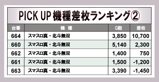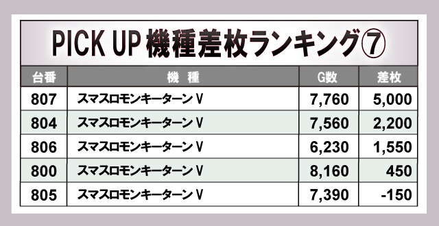 上表の7機種はスマスロを中心にまとまった出玉を獲得しており、スマスロ機の圧倒的存在感で店内の盛り上がりに貢献していたと言える。いずれの台もコンスタントに大当りを積み重ね、遊技していたファンは間違いなく手応えを感じていたはずだ。