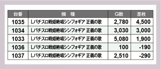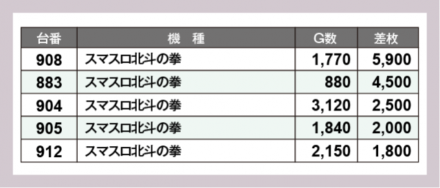 ※差枚数順に掲載しています