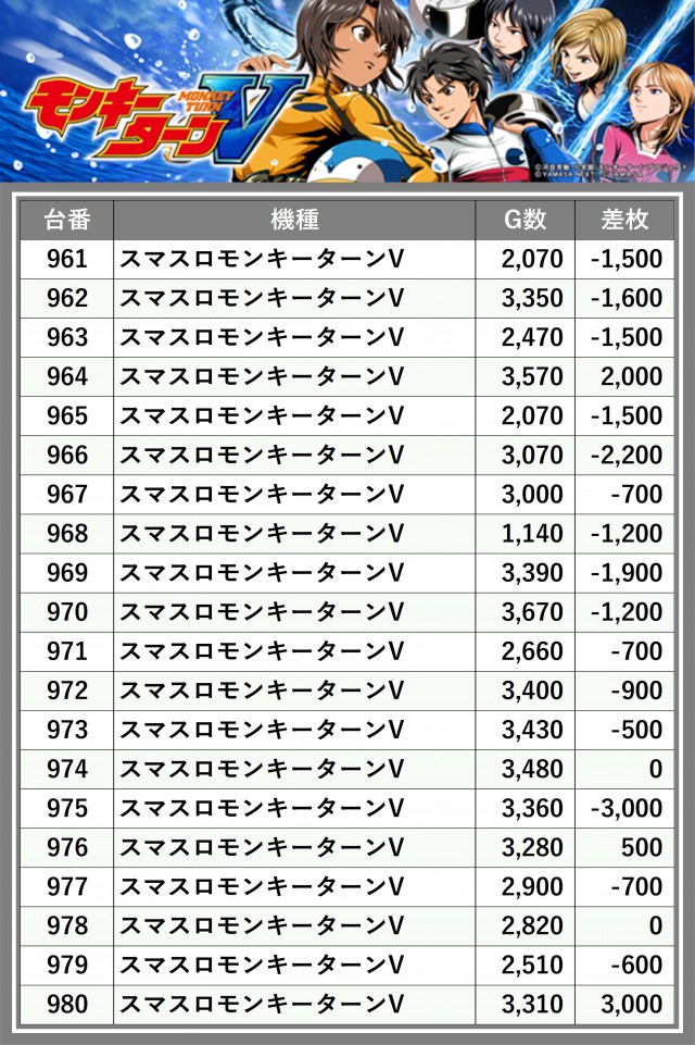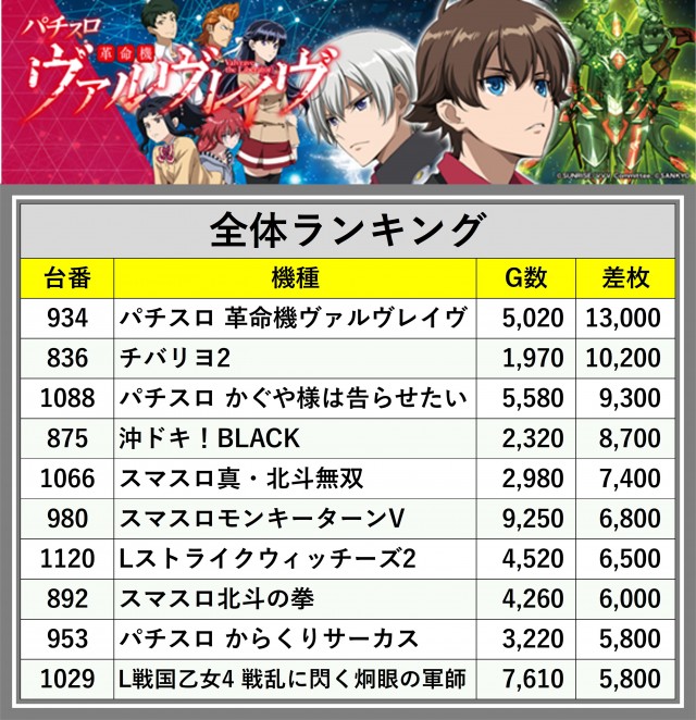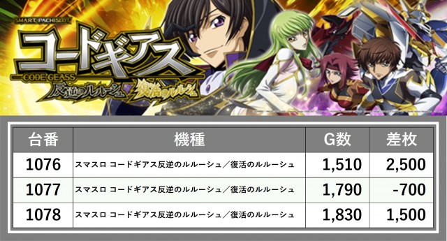 厳選された取材対象機種をはじめ、その他スロット全体から好記録が飛び出した!プレイヤーが楽しんだ1日を下記データにて振り返ってみて欲しい。