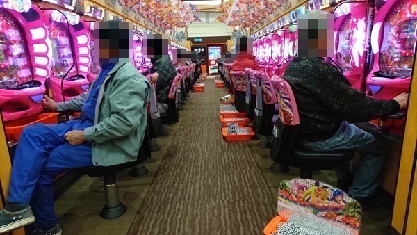 1円パチンコでは年配層を筆頭に支持を得ており、ほとんど空き台は見られないほどであった。低貸しの魅力を存分に堪能できているようで、満足度の高さが伝わってきた。