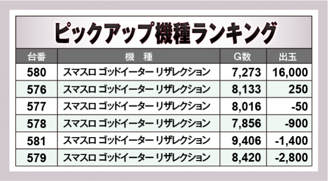 ※出玉数順に掲載しています