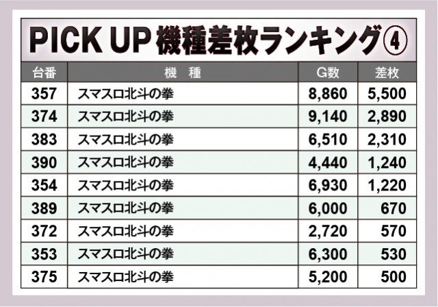 上表の6機種はいずれも活気と熱気に溢れており、当日の店内を盛り上げる存在になっていたのは間違いない。その中で万枚を達成した『押忍!番長4』『スマスロ ゴッドイーター リザレクション』の島は特に盛り上がっており、羨望の眼差しを向けるファンが多くいたのが鮮烈だ。『スマスロ北斗の拳』『マイジャグラーⅤ』も安定したパフォーマンスを披露しており、ファンは満足度の高い1日を過ごしていたのはたしかだろう。