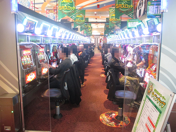 5円スロットコーナーも終始にぎわいを見せ、幅広い年代のプレイヤーが遊技に打ち込んでいた。